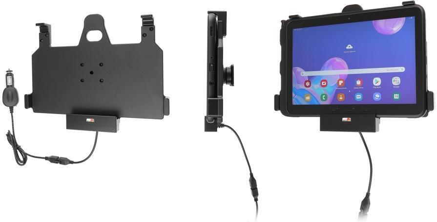 Brodit autohouder met kantelbaar scharnier. Je kunt de oplaadkabel of handsfree bevestigen terwijl het toestel in de houder zit.