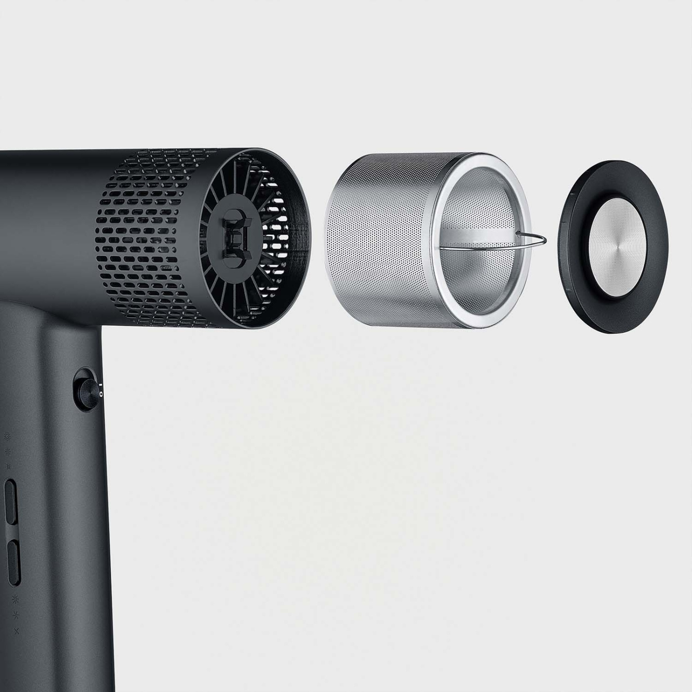 Hårtorken levereras med en magnetiskt löstagbar koncentrator för exakt styling. Dessutom ingår en diffusor som möjliggör skonsam torkning och voluminösa lockar, vilket ger dig en personlig och anpassad stylingupplevelse.