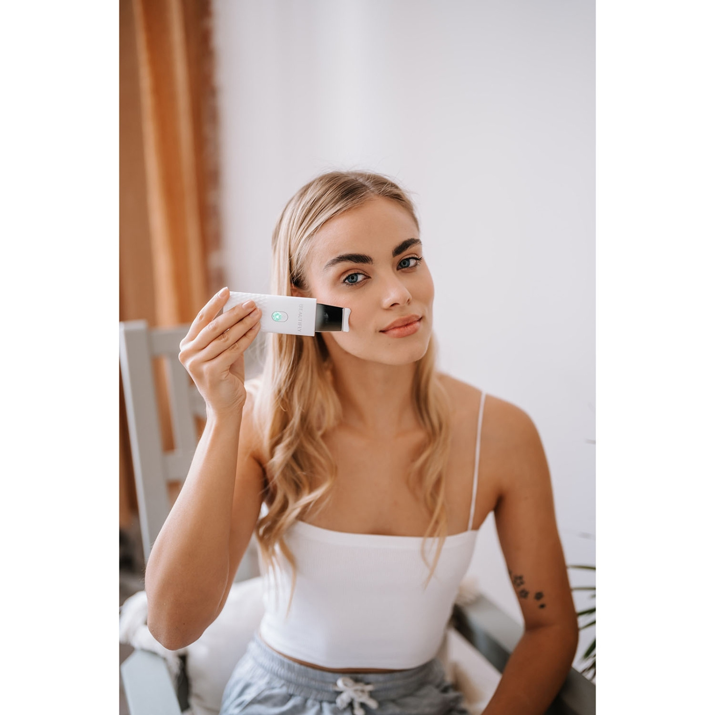 Denna kompakta peelingapparat från Beautifly har ultraljudskavitation och LED-fototerapi.