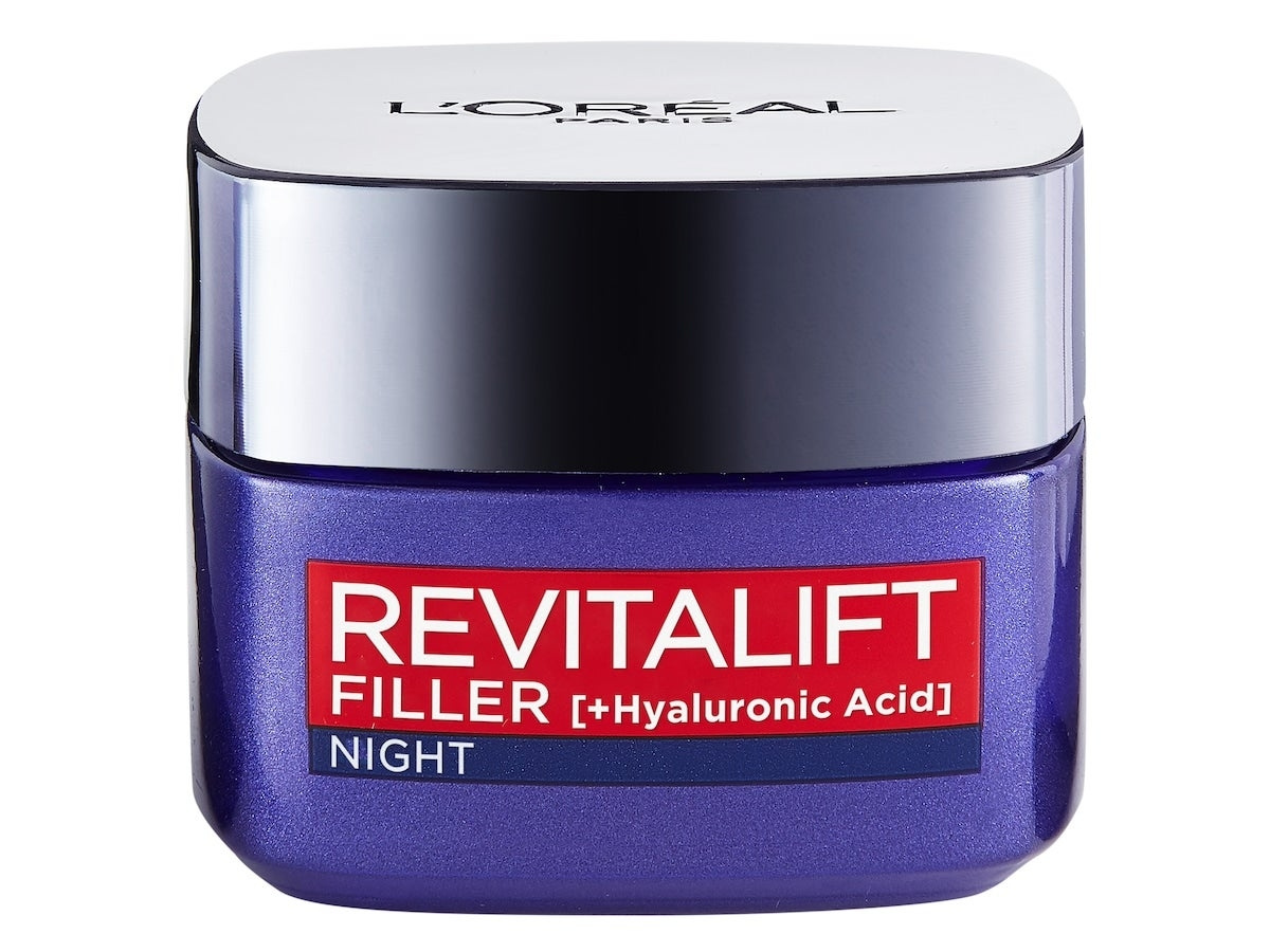 Revitalift Filler [HA] Nachtcrème van L'Oréal is een dagcrème voor de rijpere huid, die geschikt is voor iedereen die 40 jaar of ouder is en rimpels wil verminderen en het volume van de huid wil verbeteren. Het gaat in op de natuurlijke productie van hyaluronzuur in de huid die afneemt naarmate je ouder wordt. Het helpt de rimpels te verminderen en de stevigheid terug te krijgen. Daarom heeft L'Oreal deze crème ontwikkeld met een hoge concentratie hyaluronzuur.