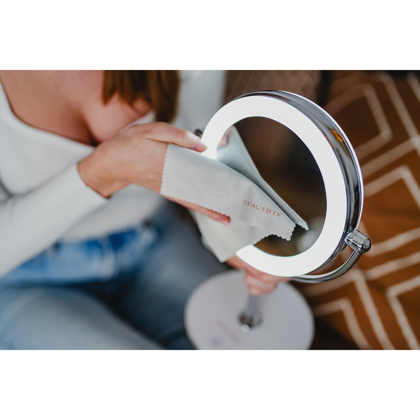 En elegant spegel frÅn Beautifly med x10-fÖrstoring och LED-belysning.