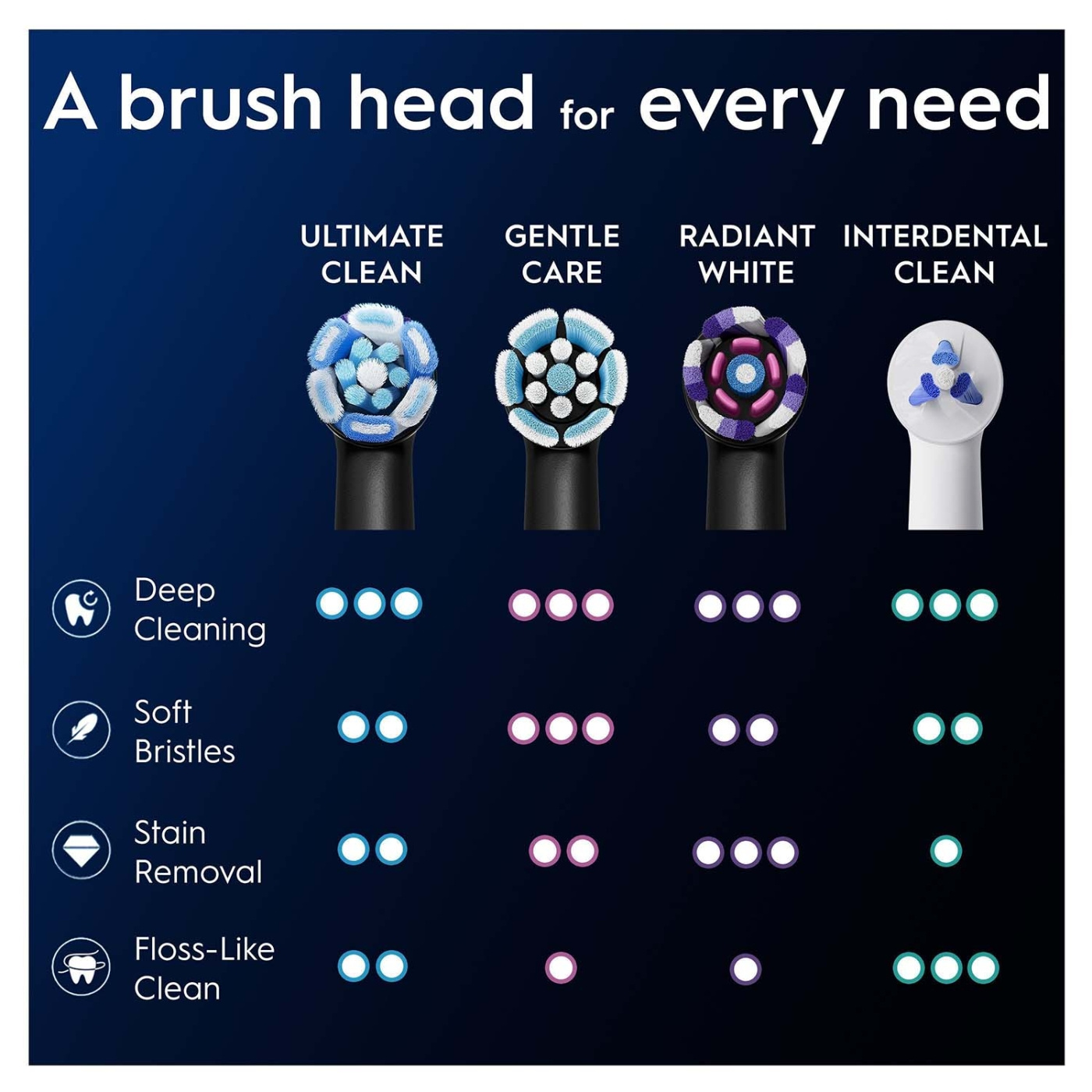 - Borststrån som ändrar färg: Oral-B:s refillborsthuvuden har färgskiftande borststrån som signalerar när det är dags att byta borsthuvud för att maximera din rengöring
