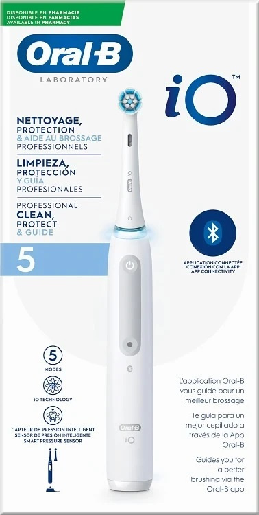 Oral-B iO Laboratory Clean 5 är en eltandborste med ett unikt runt borsthuvud. Borsthuvudet är försett med mikrovibrerande borststrån som ger en riktigt ren känsla. Eltandborsten har fem olika borstningslägen: Daglig rengöring, Mjuk, Superkänslig, Vitgörande och Tandköttsvård. Tandborsten är även utrustad med smarttrycksensor som förhindrar att du antingen borstar för hårt eller för mjukt. Gum Guard uppmärksammar dig på att du har lagt för mycket tid på att borsta med för hårt tryck. Kan anslutas till Oral-B-appen för realtidsspårning.