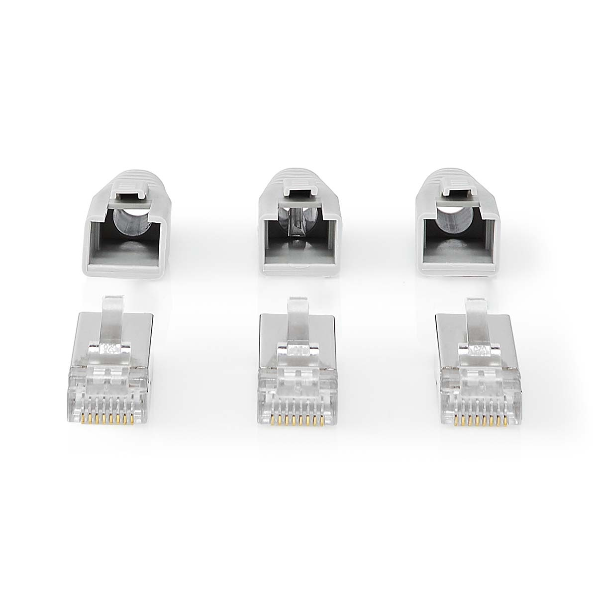 Nedis RJ45-Connector | RJ45 Pass Through | Stevig/Gesnoerd FTP CAT6a | Recht | Verguld | 10 Stuks | Polycarbonate | Grijs / Wit / Zwart | Doos