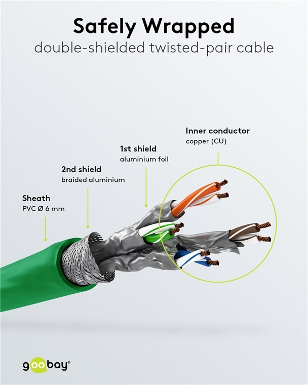 - De knikbeveiliging en de stabiele mantel beschermen de Ethernetkabel optimaal tegen kabelbreuk.