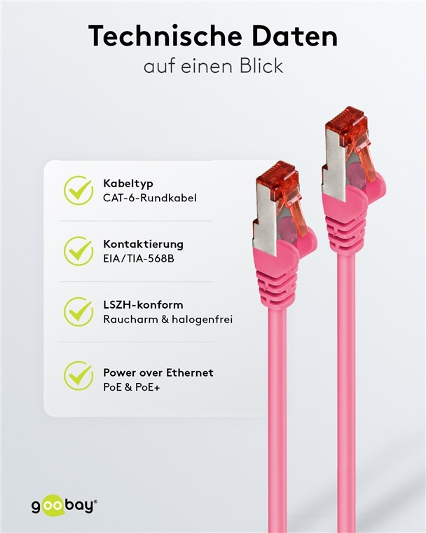 - De knikbeveiliging en de stabiele mantel beschermen de Ethernetkabel optimaal tegen kabelbreuk.