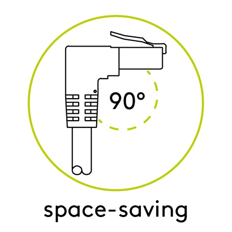 - Dubbel afgeschermde LAN-kabel met 1x 90° RJ45 haakse stekker als de ideale oplossing voor krappe ruimtes
