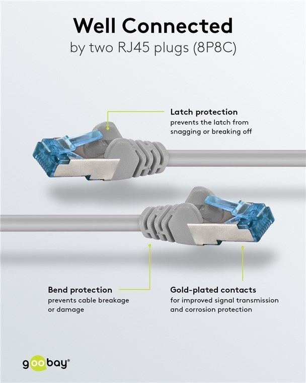 - De knikbeveiliging en de stabiele mantel beschermen de Ethernetkabel optimaal tegen kabelbreuk.