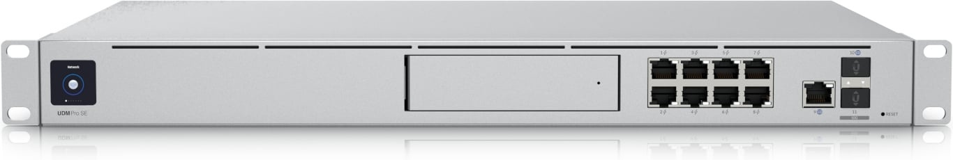 Ubiquiti De UniFi Dream Machine Pro Special Edition is een alles-in-één apparaat voor grote en middelgrote bedrijven. Het apparaat combineert onder andere een firewall, snelle dual-WAN (10G SFP+ en 2,5GbE RJ45-poorten), een beheerbare Gigabit PoE-switch, UniFi-controller en NVR met een geïntegreerde harde schijf van 128 GB.