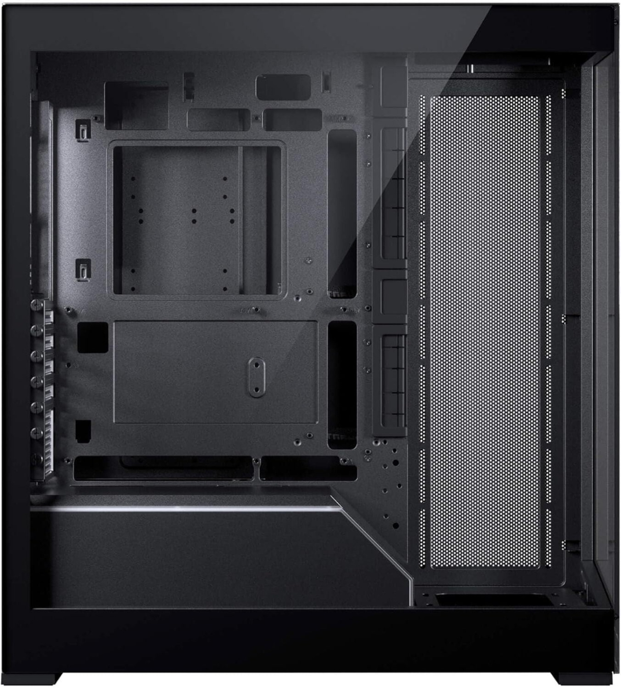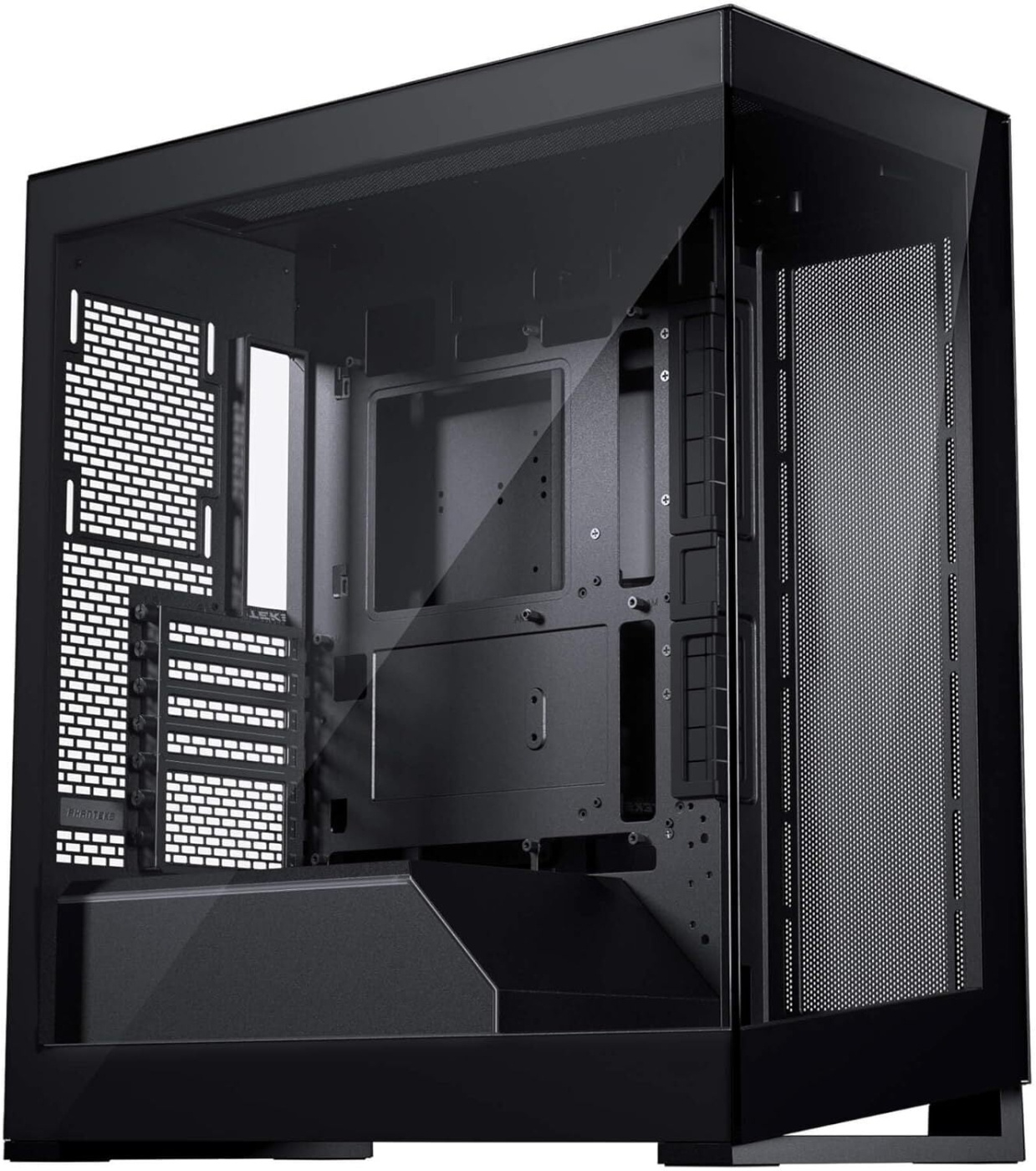 De vrijwel naadloze glazen panelen garanderen een perfect zicht op al uw componenten. De boven- en zijpanelen zijn voorzien van een zeer fijnmazig gaas dat een hoge luchtstroom en goede stoffiltering biedt. De behuizing ondersteunt acht 120 mm-ventilatoren, wat zorgt voor koelprestaties van topklasse. Bovendien is er ruimte voor twee 360 mm-koelers in de boven- en zijpanelen.