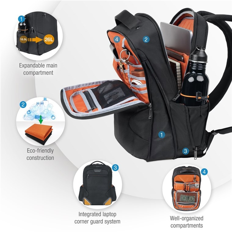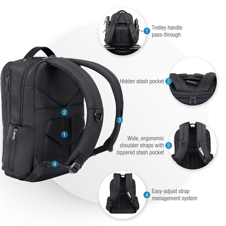 - Verfijnd ontwerp: Deze rugzak behoudt de gestroomlijnde en professionele esthetiek van het EVERKI Studio-assortiment, zodat u uw spullen met stijl en vertrouwen kunt dragen.