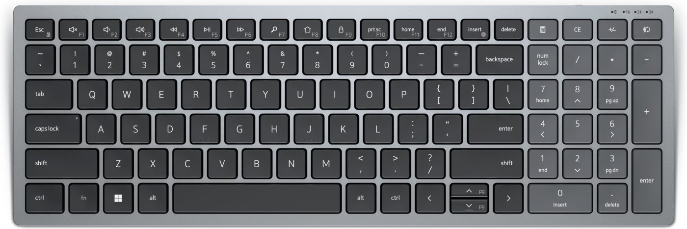 Dell De KB740 is een compact draadloos toetsenbord en de perfecte keuze als u op zoek bent naar een ergonomisch en veelzijdig toetsenbord. Verbind met maximaal drie verschillende apparaten en werk naadloos tussen uw desktopcomputer, laptop en andere apparaten. Dankzij de eenvoudige dual-mode-verbinding kunt u via draadloos 2,4 GHz of Bluetooth 5.0 verbinding maken met vrijwel elke computer.
