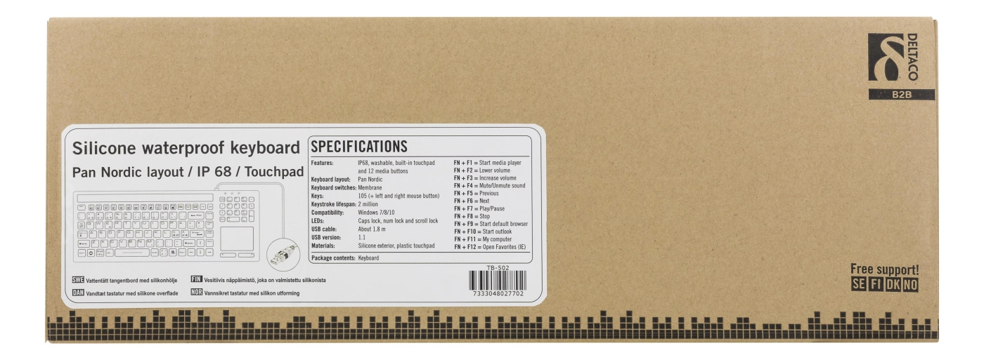 DELTACOS rubberized keyboard with touchpad is perfect for work. Because its IP68, its spill and dustproff.