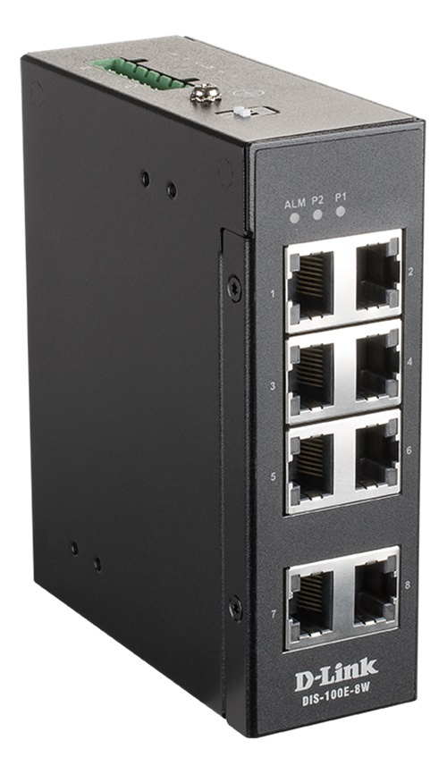 D-Link DIS-100E-8W industriell Ethernet Unmanaged Switch, 8x10/100BaseT(X)-portar, svart