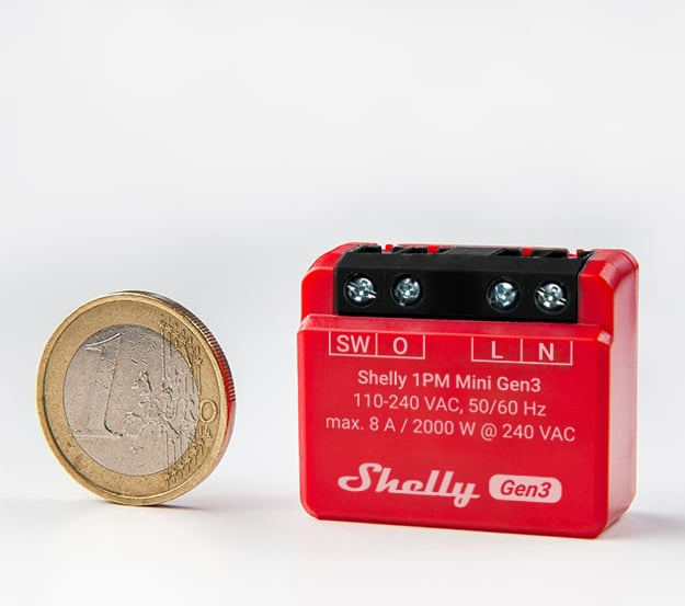 Shelly De 1PM Mini Gen3 is een zeer compacte, via wifi bediende slimme schakelaar voor intelligente besturing. Shelly Met de 1PM Mini Gen3-controller kunt u automatisch verlichting, de garagedeur, het besproeiingssysteem of andere kleine elektrische apparaten bedienen, zowel thuis als wanneer u weg bent. Shelly De 1PM Mini Gen3 is klein genoeg om in vrijwel elk wandcontactdoosje of stopcontact te passen en kan ook achteraf worden geïnstalleerd.