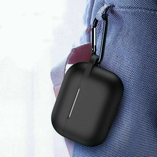 Compacte siliconen hoesje met karabijnhaak voor Airpods Pro-oortjes. Een hoesje van hoogwaardige siliconen beschermt je oortjes tegen schade, vuil, stof en krassen. Dankzij het lichte gewicht kun je het altijd bij je dragen en de haak maakt het gemakkelijk om het aan kleding, een rugzak of aan een haak in de hal te hangen!