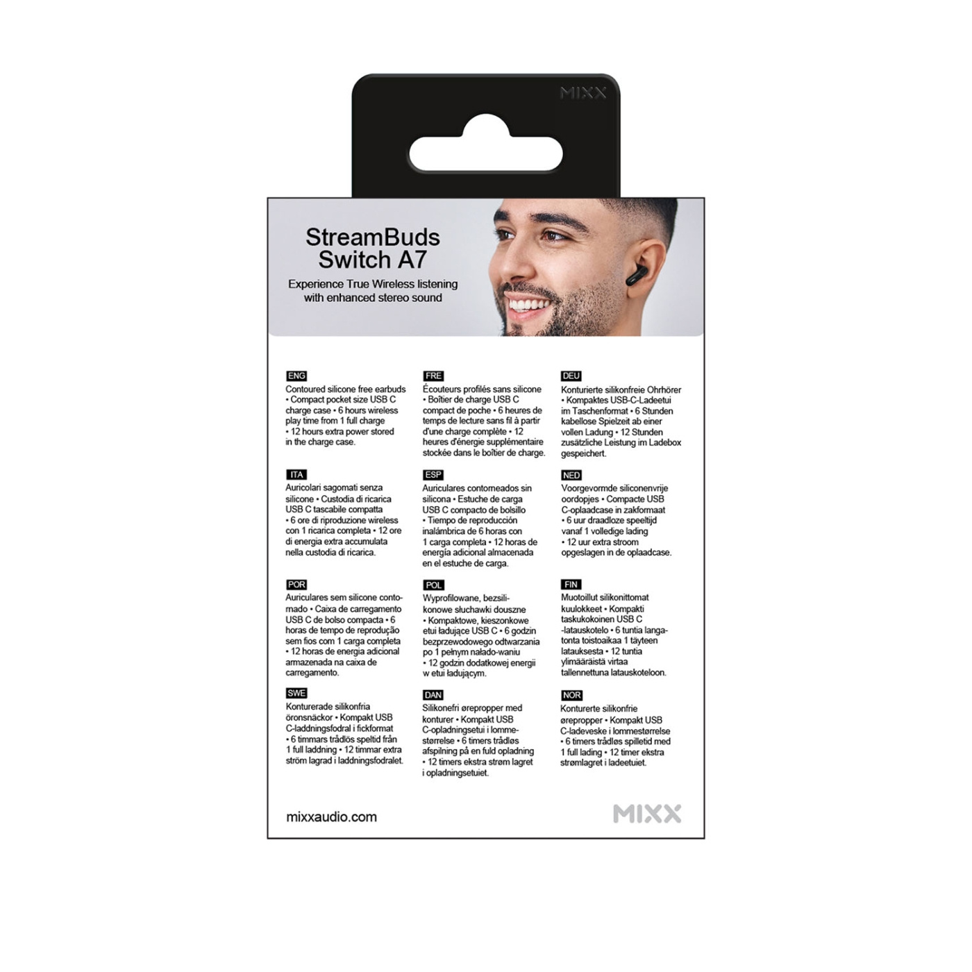 Upplev trådlös frihet med öronsnäckor från MIXX, med 18 timmars batteritid.