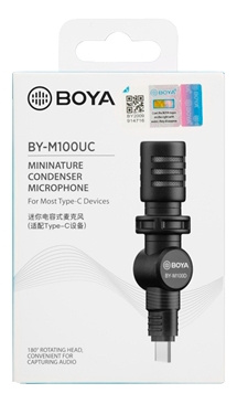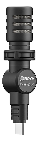 BY-M100UC är en rundstrålande mikrofon i miniatyrstorlek för de flesta smartphones eller enheter med Type-C-uttag, för att förbättra din ljudkvalitet vid videoframställning.