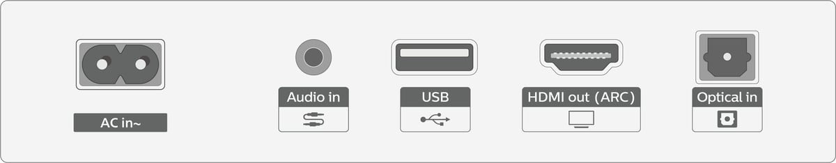 - HDMI, optische audio, hoofdtelefoonaansluiting 3,5 mm, USB
