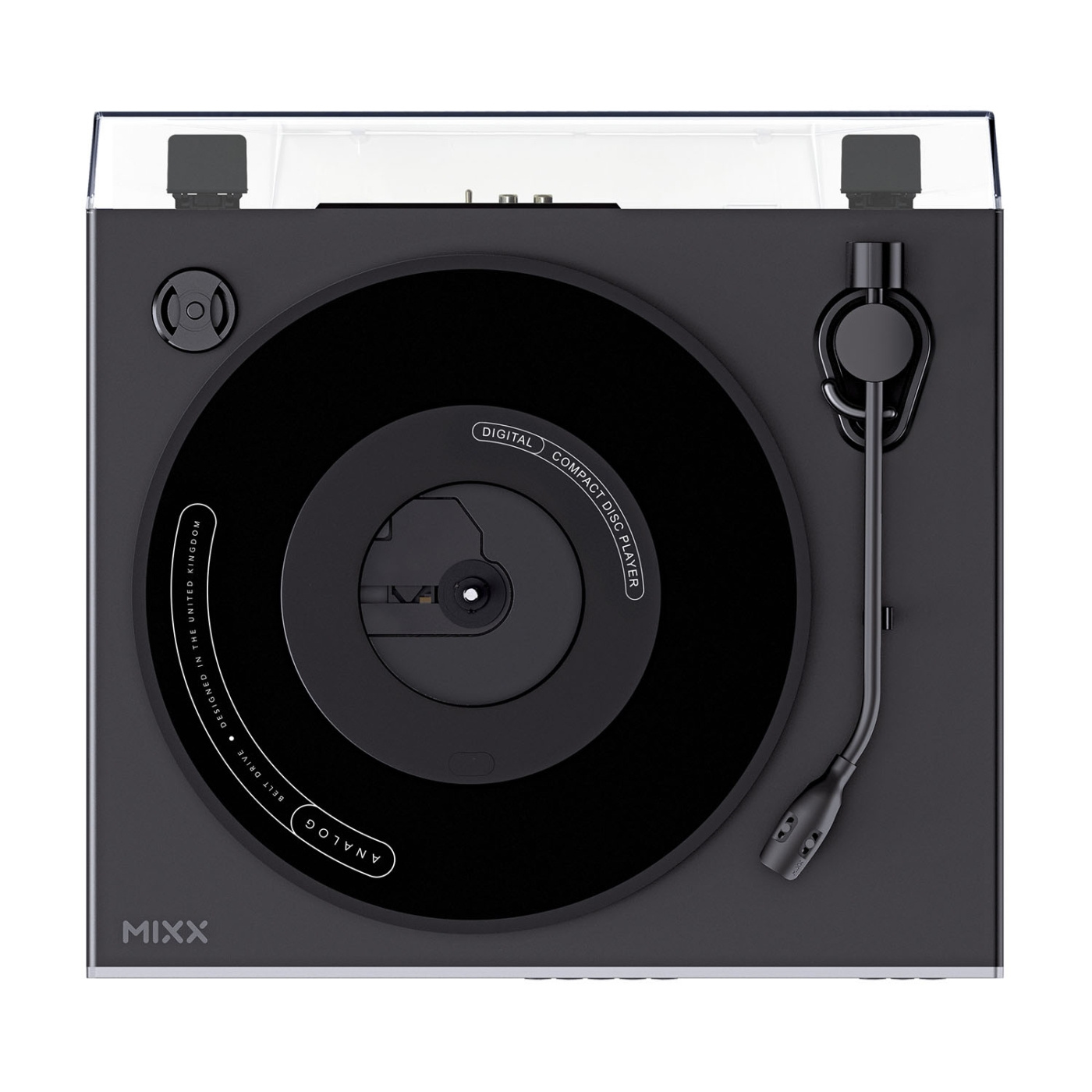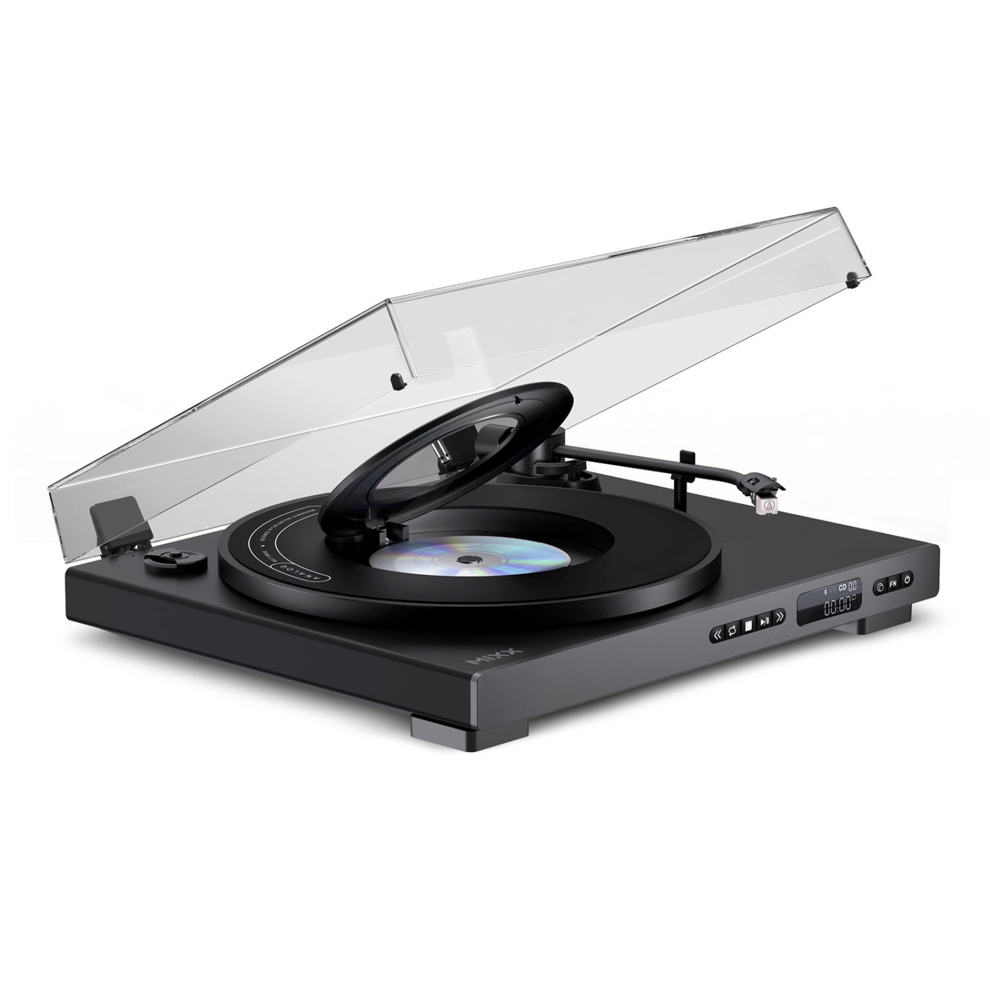 Ett mångsidigt musiksystem från MIXX med skivspelare och CD-spelare.