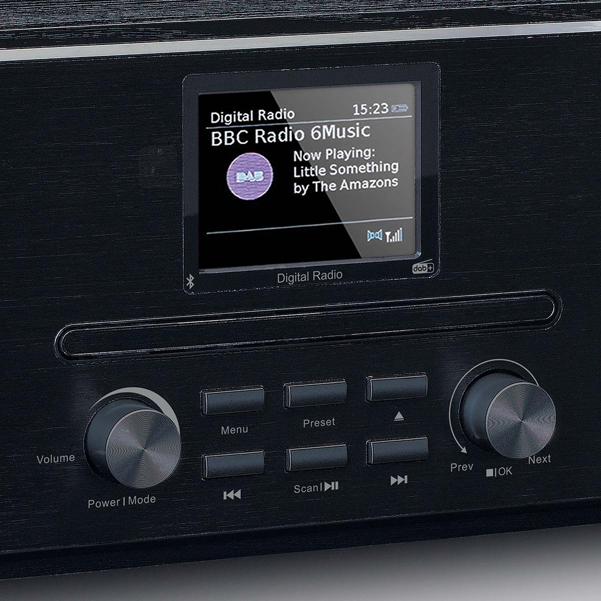 • DAB+•.Bluetooth 5.0• CD/MP3-speler• PLL FM radio• Dubbele alarmfunctie, slaaptimer, snoozefunctie• 2,8 '' TFT LCD kleurenscherm (7 cm)• Meerdere OSD talen• Ondersteunende audio formaten: MP3, WAV, AAC• Meerdere OSD talen• Uitgangsvermogen : 2 x 10 Watts (RMS)• Equalizer• Aansluitingen: Hoofdtelefoon uitgang 3,5mm, AUX-ingang van 3,5mm• Inclusief afstandsbediening en AC-adapter