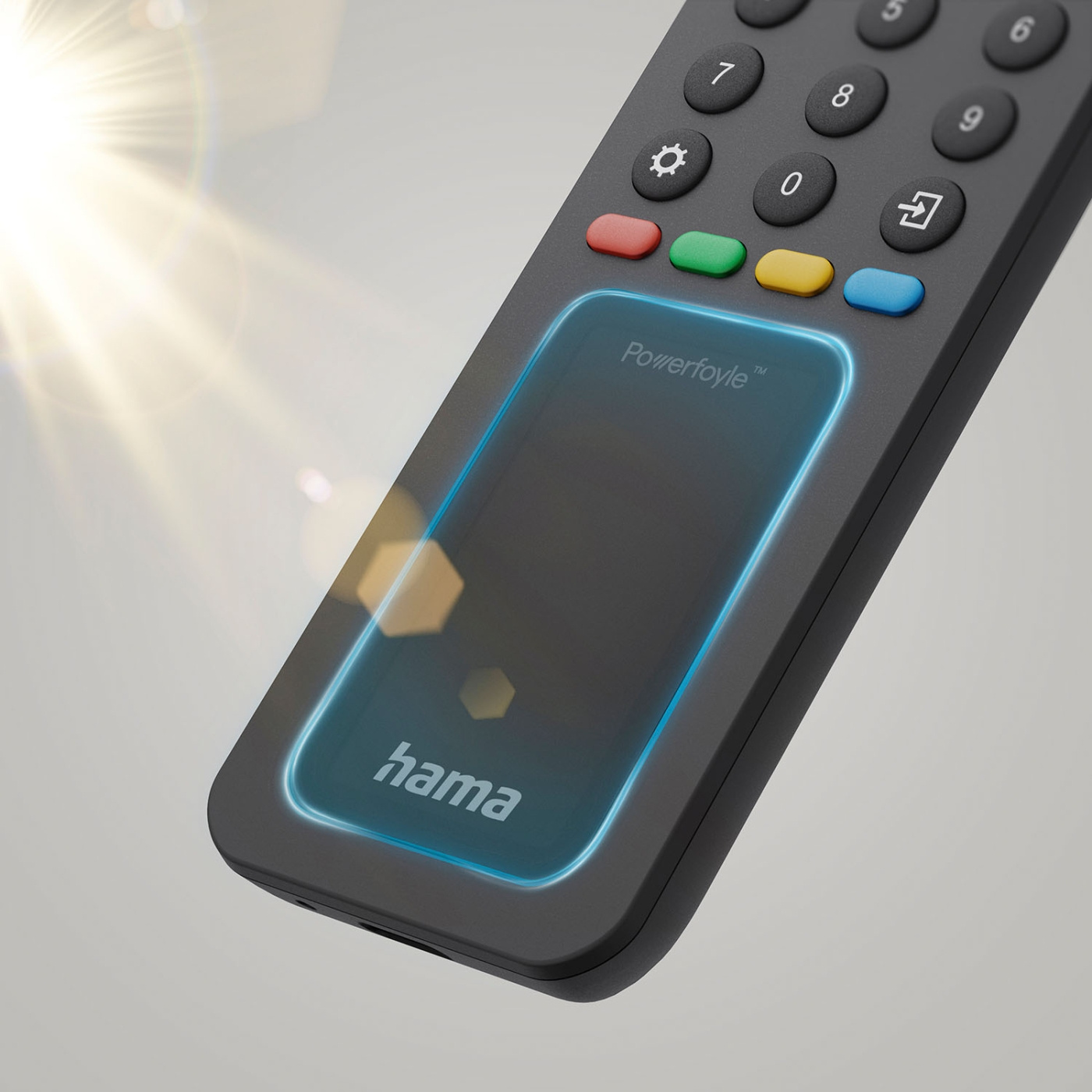 Denna universella fjärrkontroll från Hama är solcellsdriven och styr upp till åtta enheter.