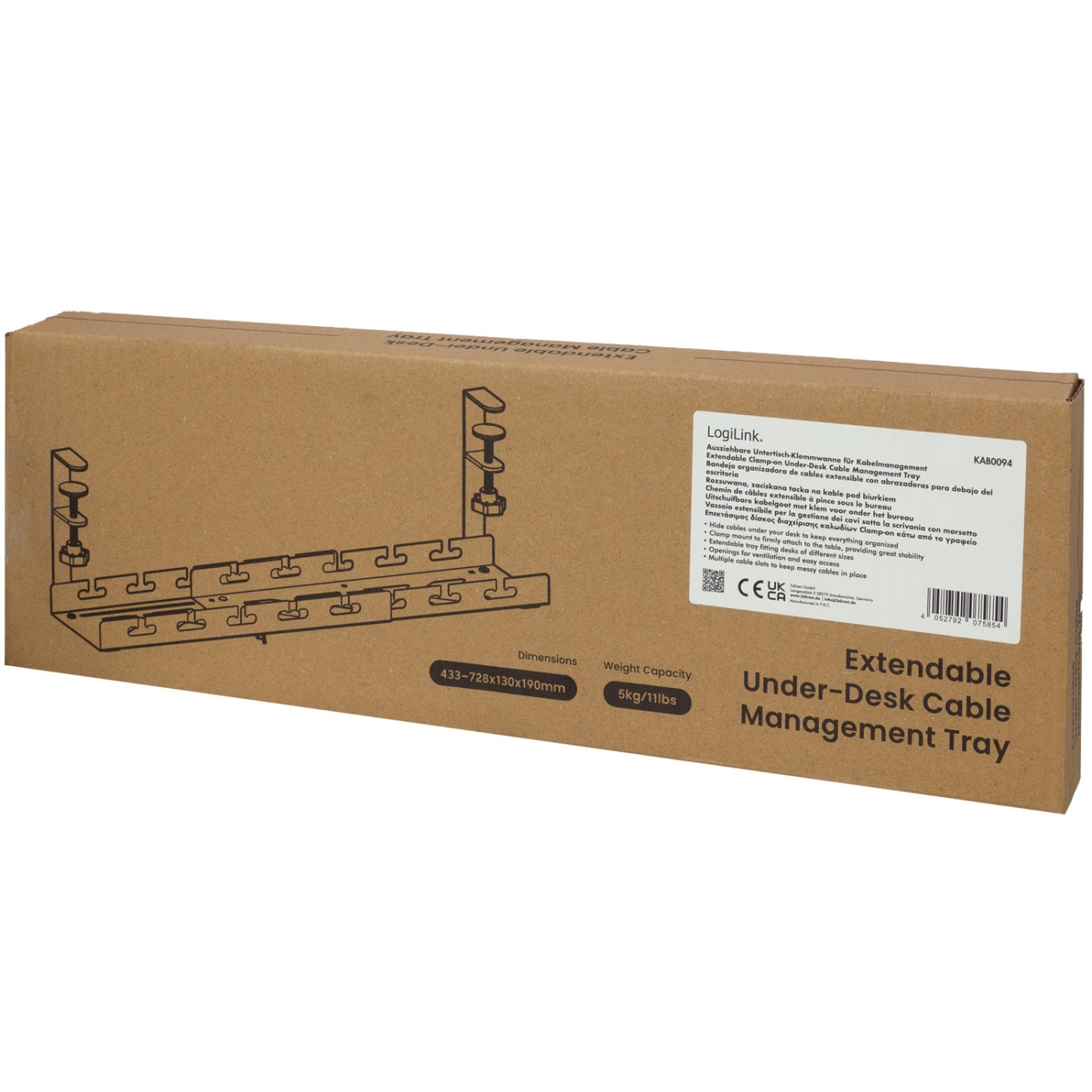 LogiLink Kabelränna för skrivbord – med tvingmontering, utdragbar