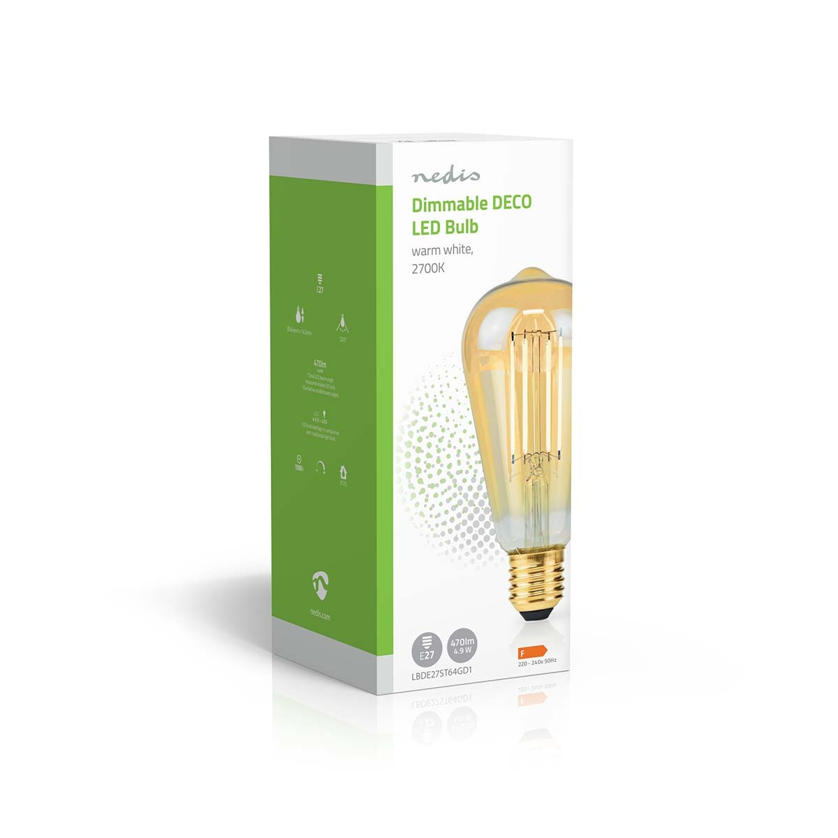 Nedis LED-Filamentlamp E27 | ST64 | 4.9 W | 470 lm | 2100 K | Dimbaar | Extra Warm Wit | Retrostijl | 1 Stuks
