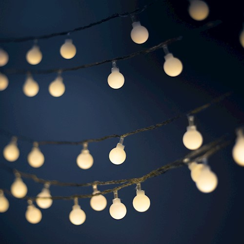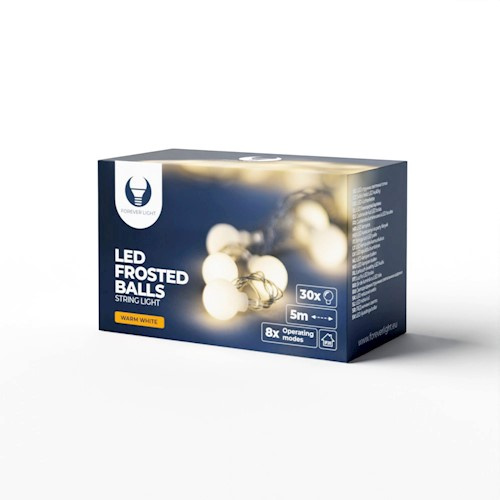 LED-slingan har 30 bollar jämnt fördelade och är också programmerad med 8 ljuslägen, från mjuk belysning till blinkande.