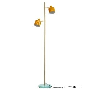 Deze lamp heeft een uniek kleurenpalet dat curry, messing en turkoois combineert, wat zorgt voor een levendige en toch geraffineerde look. De slanke metalen constructie zorgt niet alleen voor duurzaamheid, maar voegt ook een eigentijds tintje toe aan je woonkamer, slaapkamer of kantoor. Het minimalistische ontwerp is veelzijdig genoeg om bij verschillende interieurstijlen te passen, van modern tot eclectisch.