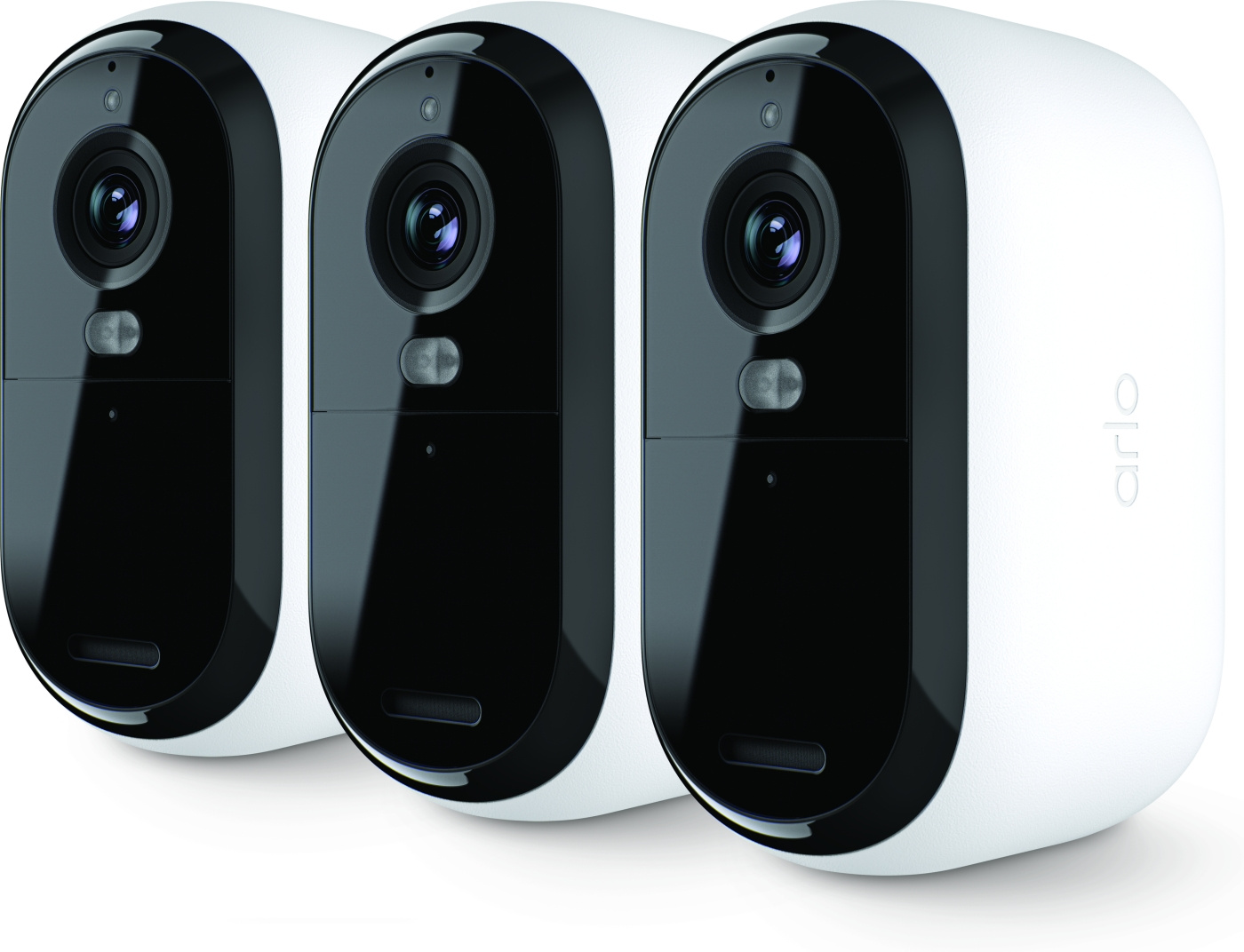 Arlo De Essential 2 HD is een volledig zelfstandige bewakingscamera met 2,4 GHz Wi-Fi-verbinding. Arlo Dit product bevat drie witte Essential 2 HD-camera's. De camera's hebben Full HD-resolutie, tweewegaudio, een klein LED-lampje en een ingebouwde sirene, en zijn geschikt voor binnen en buiten.