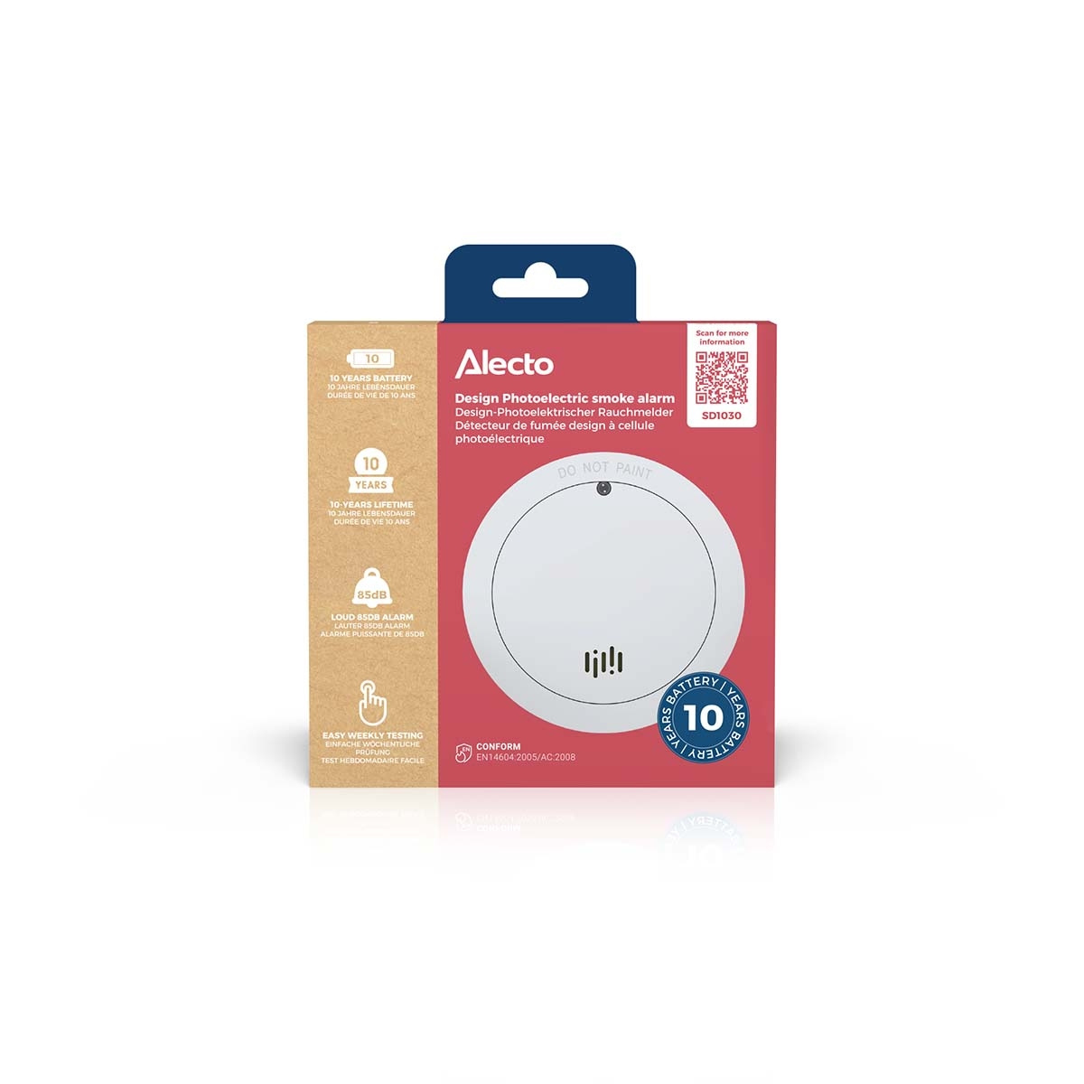Het grote voordeel van de SD1030 is de ingebouwde lithiumbatterij waarmee je 10 jaar kunt werken. Eenmaal geïnstalleerd hoeft u nooit meer na te denken over het vervangen van de batterij.