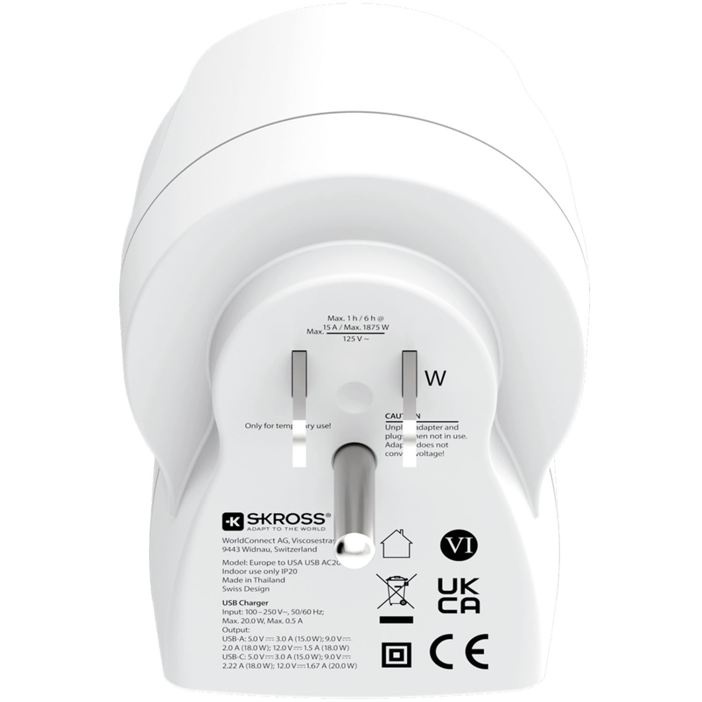 De Amerikaanse stopcontactstandaard wordt gebruikt in bijna 50 bestemmingen over de hele wereld. Deze reisadapter van SKROSS® biedt een betrouwbare en eenvoudige aansluiting voor apparaten met een Schuko- of Eurostekker.