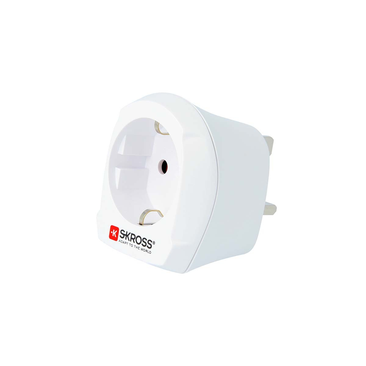 SKROSS® Country Adapter Europe to UK ger en pålitlig och enkel anslutning för enheter med en Schuko- eller Euro-kontakt, vilket säkert möjliggör användning av strömkrävande enheter som bärbara datorer och hårtorkar.