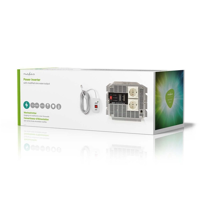 Nedis Omvormer Gemodificeerde Sinusgolf | Ingangsvoltage: 12 V DC | Apparaat stroomoutput: Type F (CEE 7/3) | 230 V AC 50 Hz | 4000 W | Piekvermogen: 8000 W | Screw Terminal | Zilver