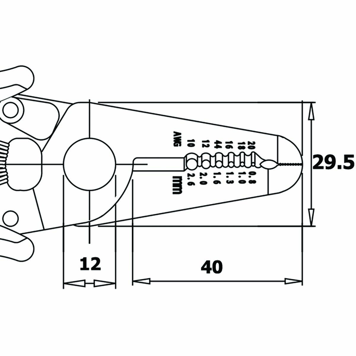 Zeer sterk gereedschap voor alle doeleinden. Het kan worden gebruikt als: schaar, draadstripper met meerdere diameters, tang. Voor 10, 12, 14, 16, 18, 20 AWG kabels. Greepmodel S.