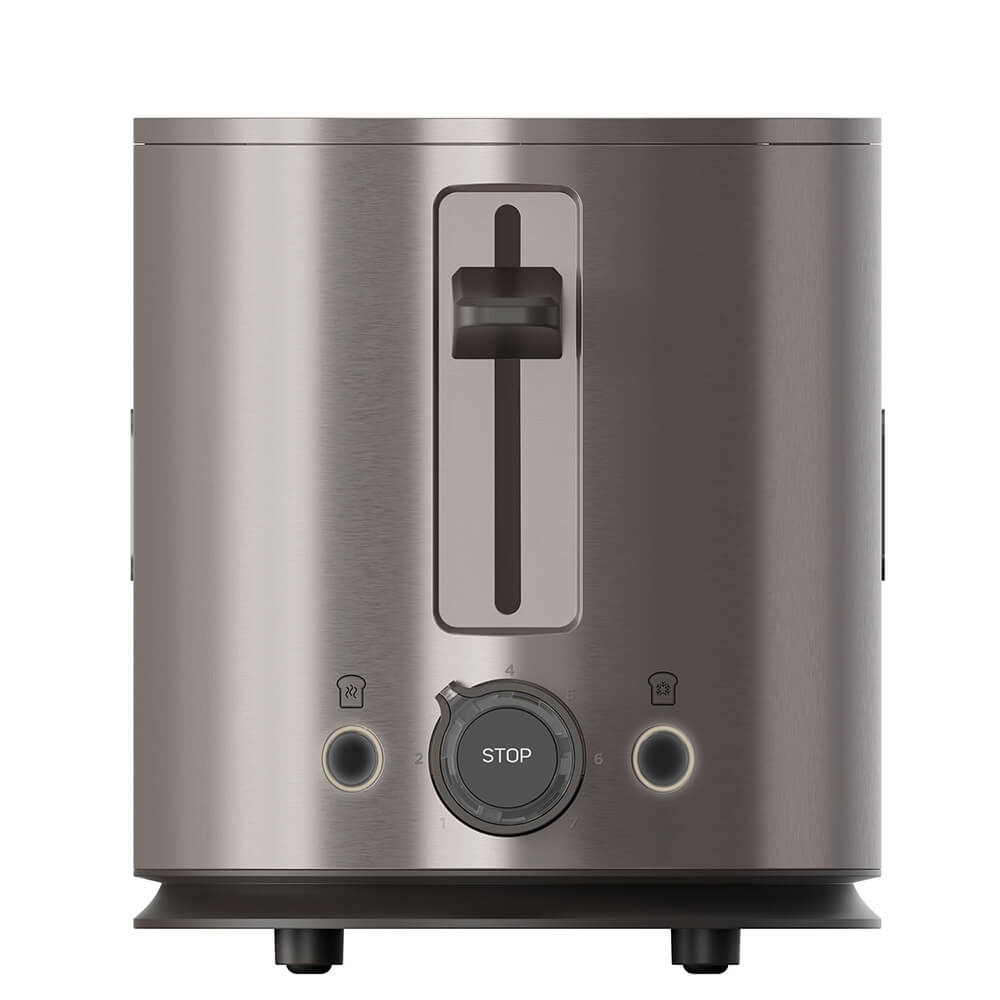 Brödrost på 1500W i rostfritt stål med 2 extra stora slitsar, 7 bryningsnivåer och 3 funktioner: avfrosta, värma upp och avbryta.