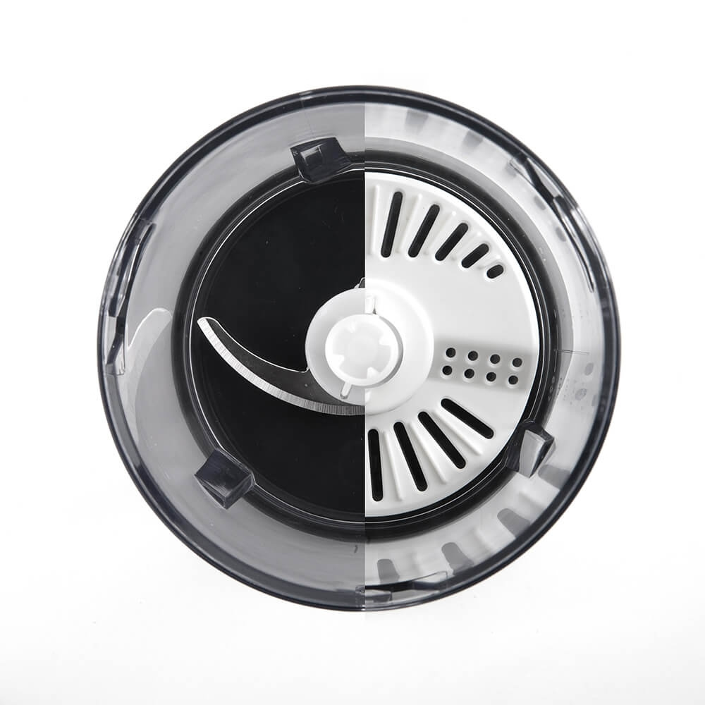 Glöm bort att använda en kniv och spara din tid; du behöver bara placera ingredienserna i behållaren, aktivera processorn och på några sekunder har du dina ingredienser finhackade och klara.