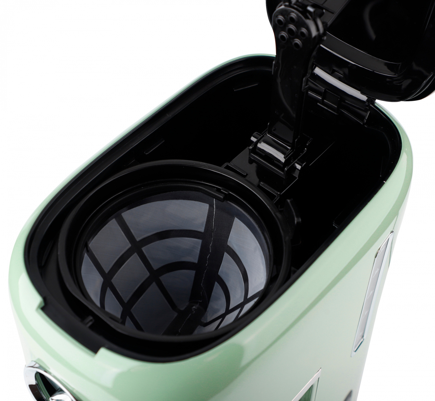 Designen är retro och i läcker pistagegrön färg. Glaskanna med bekvämt handtag och vattentank med tydliga vattennivåangivelser. Bryggaren har lock och handtag i svart värmetåligt material. Kaffebryggaren har även ett medföljande återanvändningsbart filter, droppskydd och automatisk avstängning.