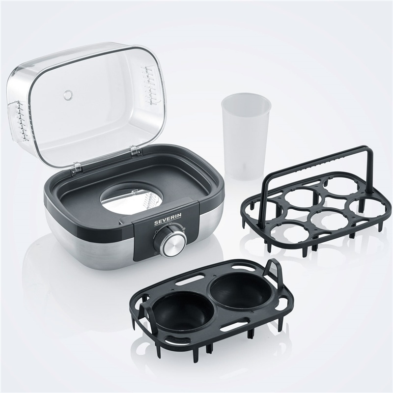 Ny snygg svart/silver design med LED-belysning. I den här modellen ingår även en insats som gör att du kan pochera ägg eller ångkoka grönsaker.