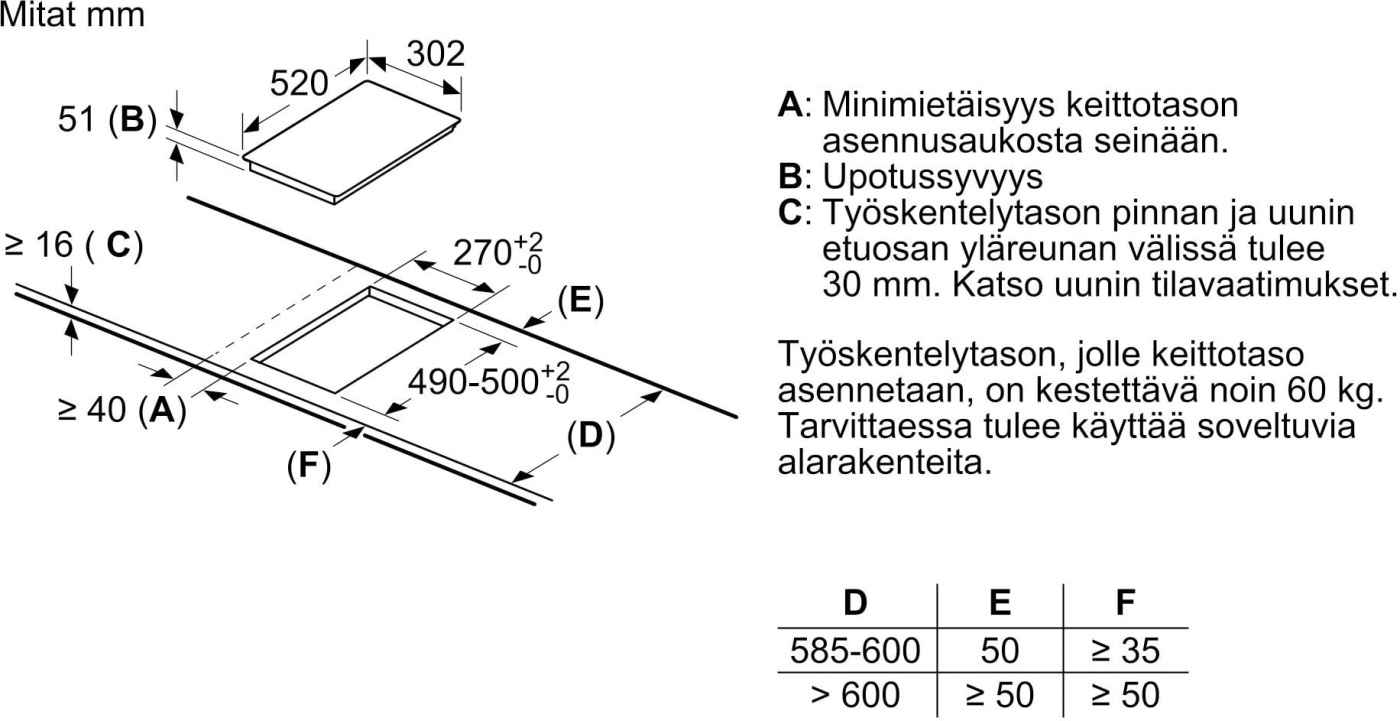 - Afmetingen H x B x D (mm): 51 x 302 x 520
