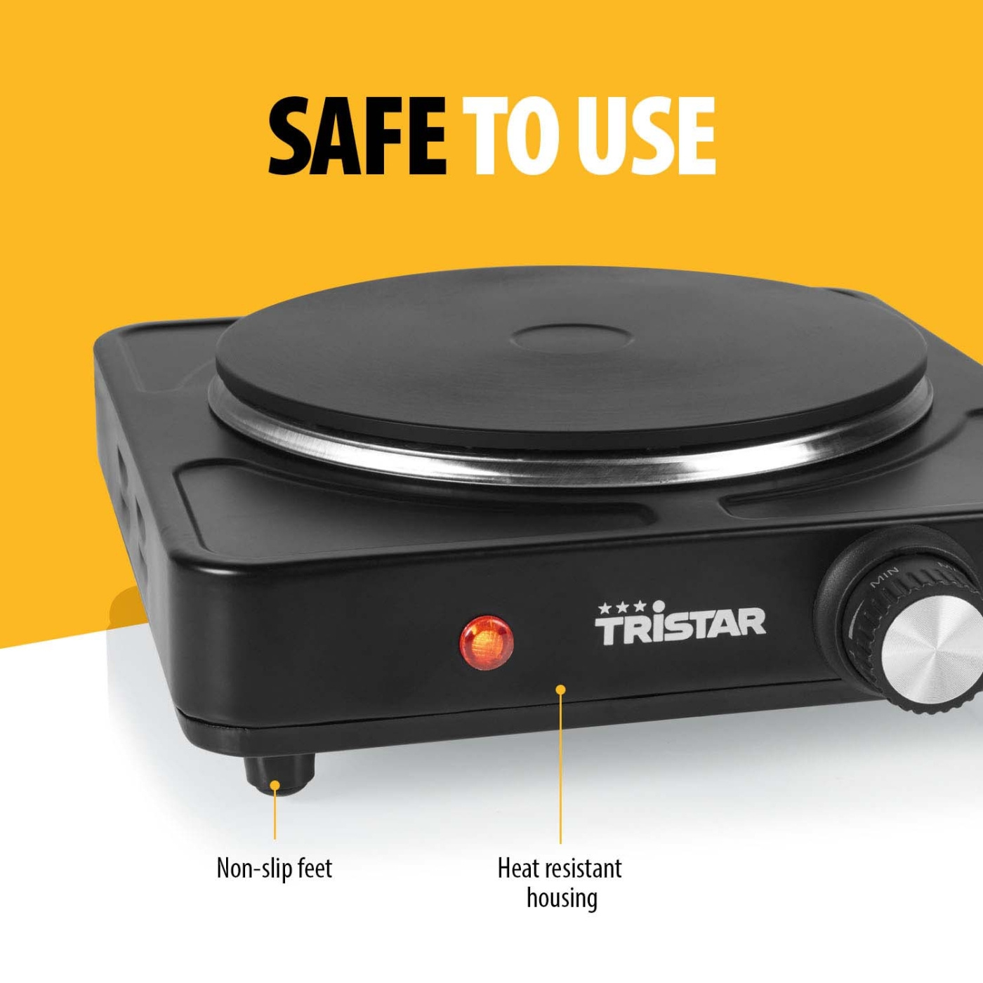 Lättanvänd kokplatta av järn med en diameter på 18,5 cm. Det är väldigt enkelt att reglera temperaturen tack vare termostatkontrollen. Utrustad med indikatorlampa och halkfria fötter.