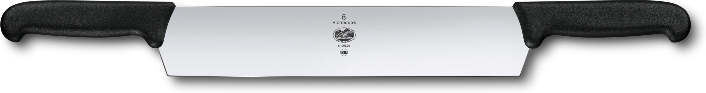 Victorinox ostkniv med 30 cm långt blad. Två Fibrox-handtag på kniven, som möjliggör ett stadigt grepp om kniven, vilket gör hanteringen av även större ostar enkel och säker.