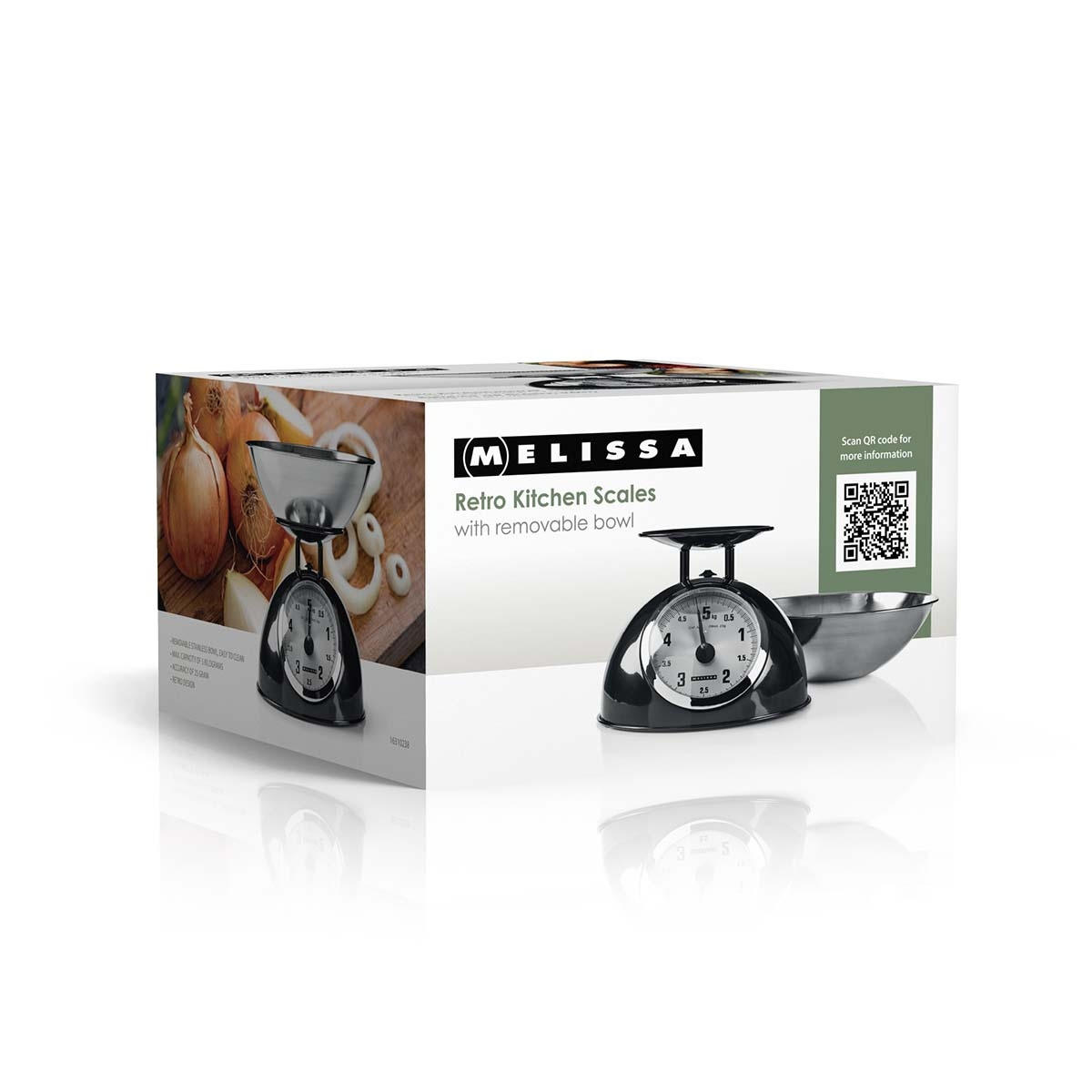 De Melissa weegschaal heeft een afneembare roestvrijstalen kom die hygiënisch en gemakkelijk schoon te maken is. De kom past stevig op de weegschaal tijdens het gebruik en kan gemakkelijk worden verwijderd om af te wassen of om ingrediënten direct over te brengen in je mengkom of pan. Het roestvrijstalen materiaal is bestand tegen vlekken en geurtjes en zorgt voor een langdurige frisheid.