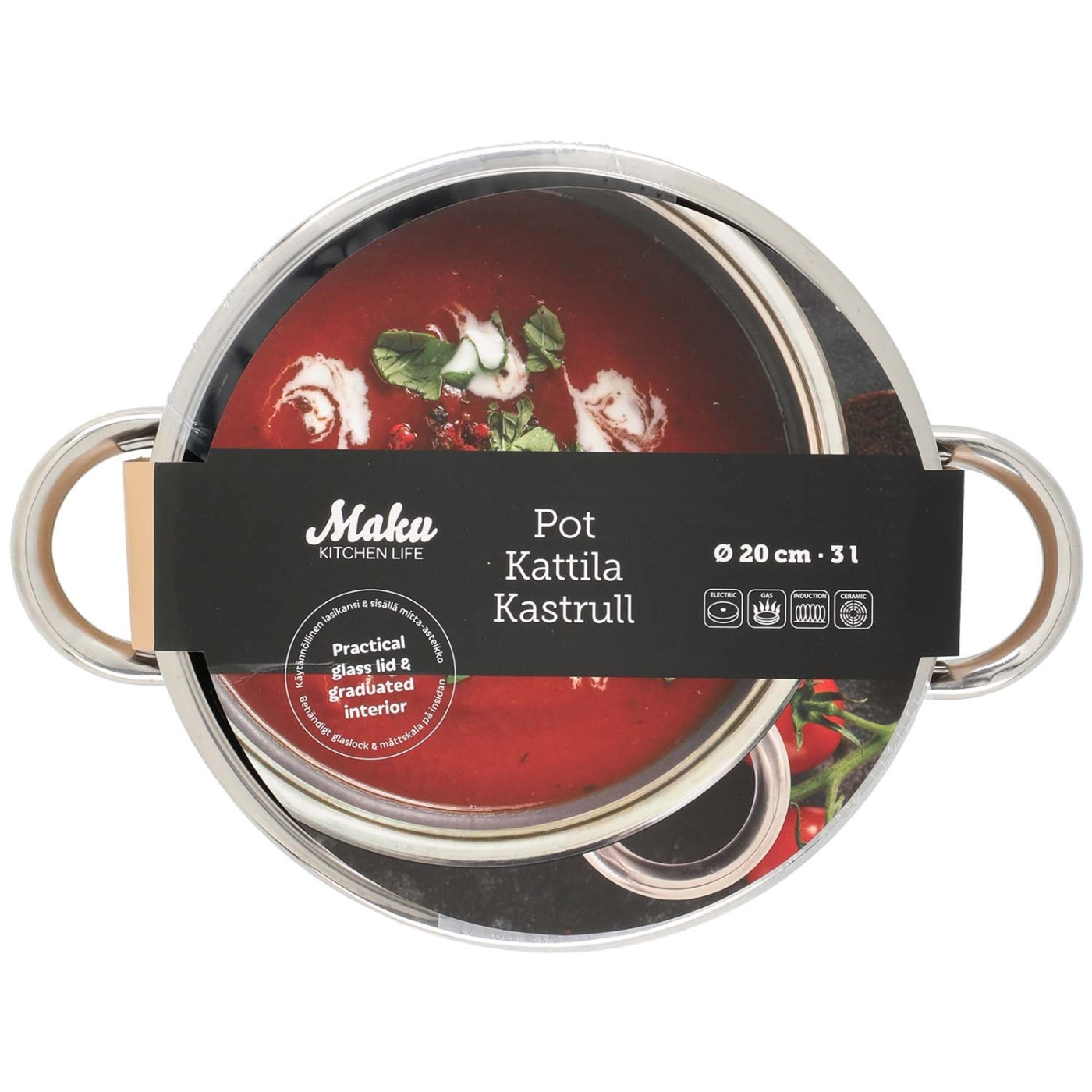 Maku Kastrull 3 L med Glaslock – rymlig, hållbar och stilren