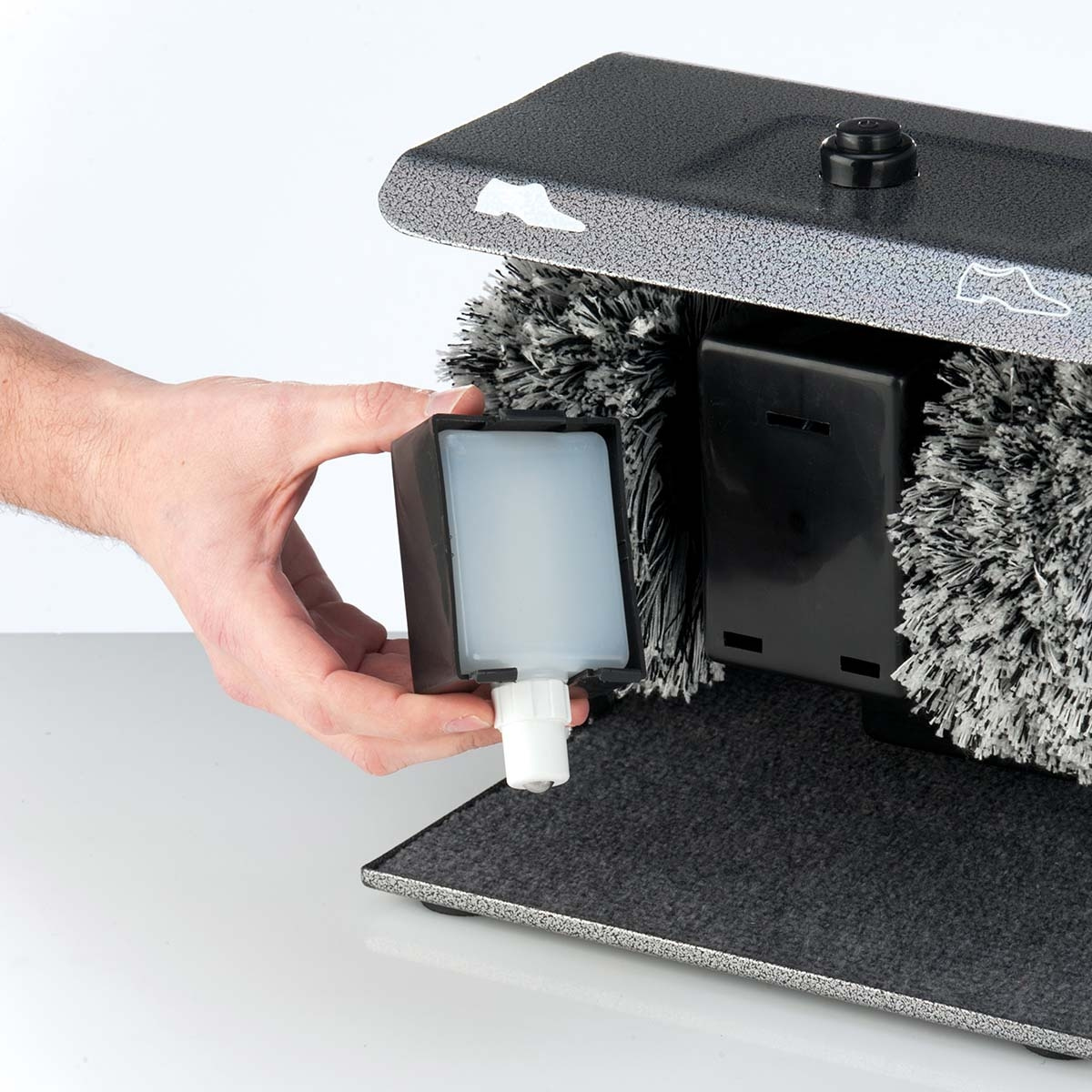 Voorzien van twee aparte borstels voor lichte en donkere schoenen is en met een vermogen van 90 Watt is deze schoenpoetsmachine geschikt voor de meeste soorten schoeisels. De drukknop bovenop zorgt voor een eenvoudige bediening met de voet. In de dispenser is vloeibare schoencréme toe te voegen voor een nog betere verzorging en een mooi glanzend effect.