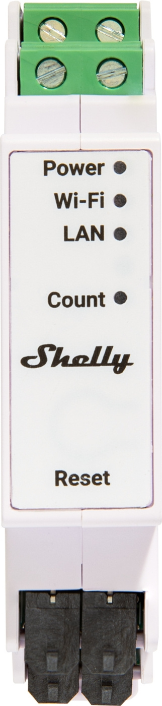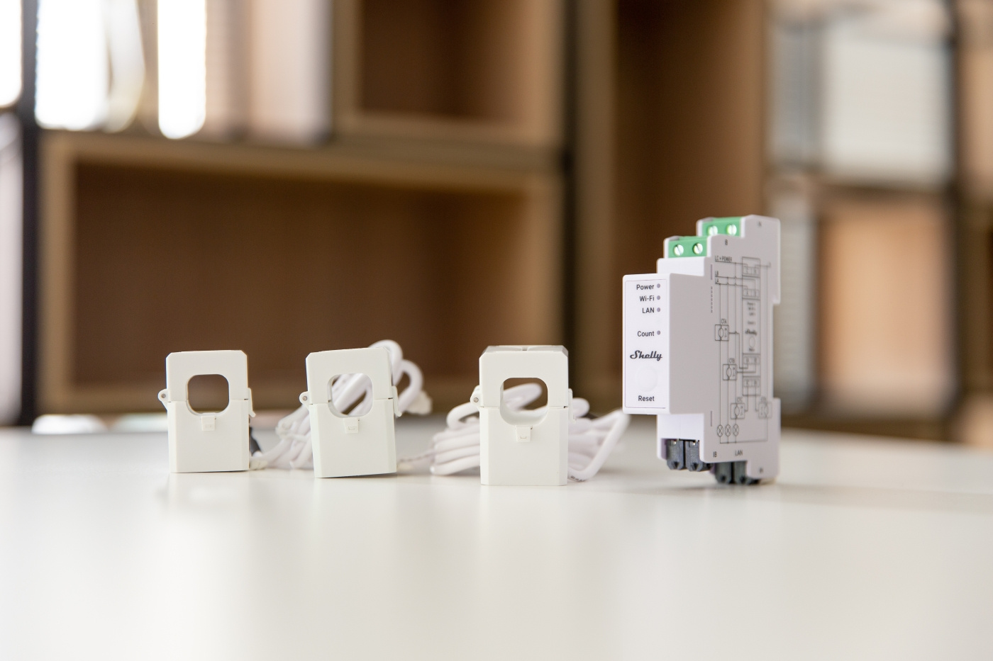 Shelly De Pro3 EM is een driefasige energiemeter die met behulp van transformatorstroomtangen energie meet in drie afzonderlijke fasen bij een belasting tot 120 A en met een nauwkeurigheid van 99%. Het apparaat rapporteert in realtime de opgebouwde energie en de actuele spanning, stroom en vermogensfactor per fase. Het slaat gegevens op in een niet-vluchtig geheugen, dat tot 60 dagen lang met intervallen van 1 minuut kan worden opgevraagd.