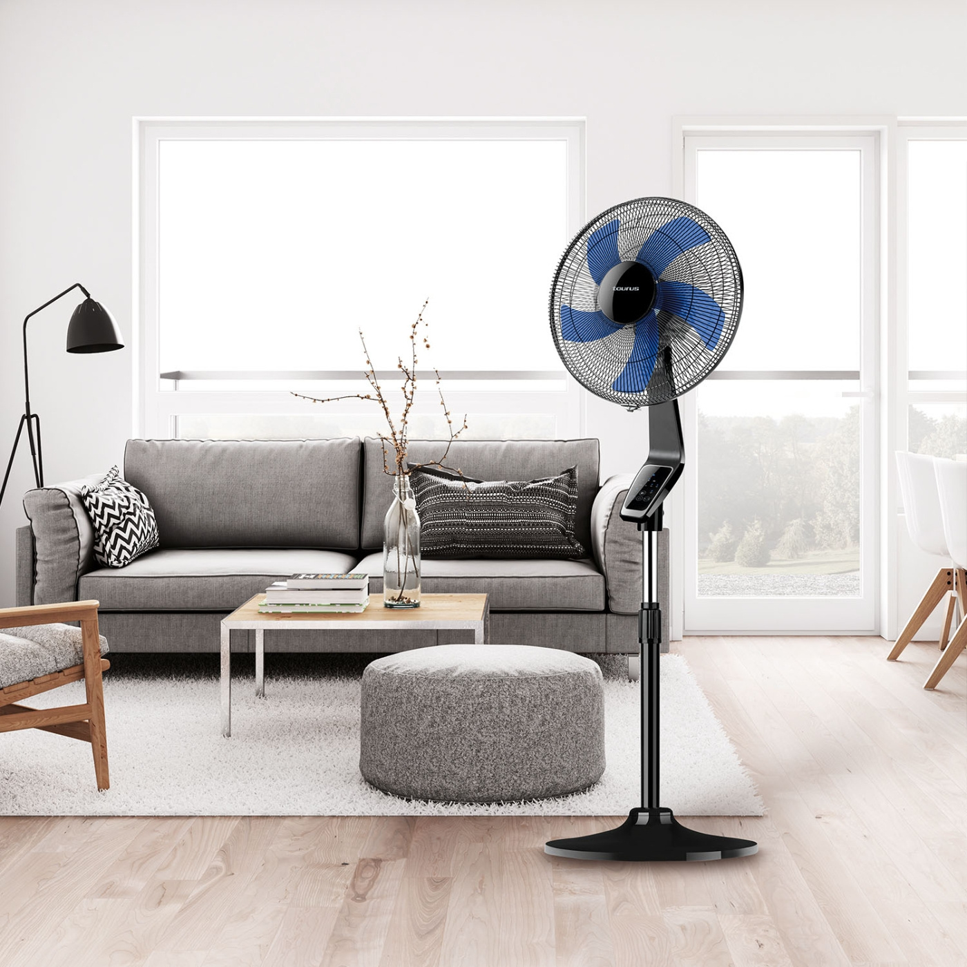 Denna piedestalfläkt från Taurus har digital styrning och kraftfullt luftflöde för optimal kylning.
