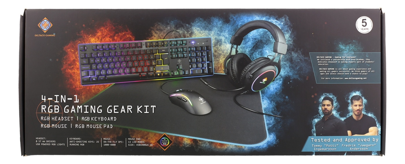 DELTACO GAMING 4-in-1 RGB Gaming Gear Kit, Headset/Toetsenbord/Muis/Muismat, zwart/RGB