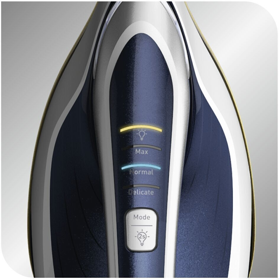 Pro Express Vision producerar effektivt kontinuerlig ånga upp till 180 g/min, vilket gör strykningen ännu smidigare. Det höga ångtrycket på 8,1 bar jämnar ut kläderna under tidsenheten. Mängden extra ånga är upp till 700 g/min, tack vare vilken ångan snabbt tränger djupt in i tyget och tar bort även de mest envisa rynkor och veck, även från de tjockaste tygerna. Enhetens effekt är 3 000 W, tack vare vilken strykjärnet snabbt värms upp. Tre ånginställningar finns tillgängliga, som bekvämt justeras direkt från handtaget.